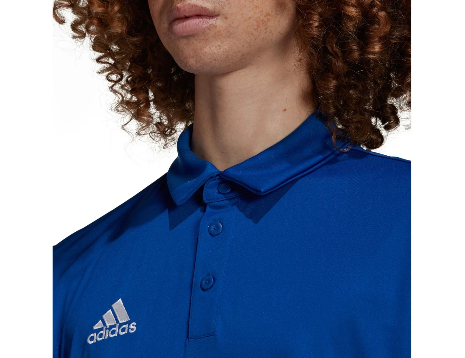 The blue adidas Entrada 22 football polo for men has a timeless look and is comfortable to wear due to the moisture-absorbing AEROREADY material. The collar has three buttons, the adidas Badge of Sports logo is embroidered on the front. The polo is made from 100% recycled polyester.