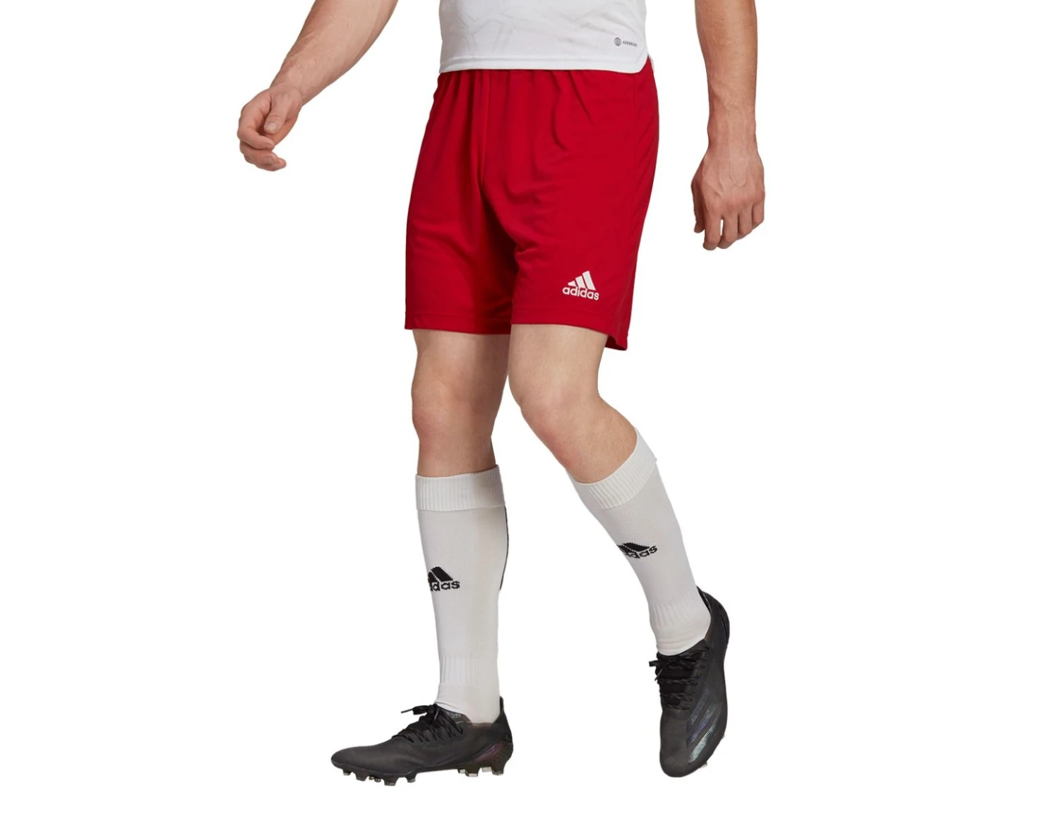 The red adidas Entrada 22 shorts for men have a clean, classic design with AEROREADY technology to keep you dry and fresh. The waistband is elastic and has a drawstring. The football shorts are made with 100% recycled polyester.