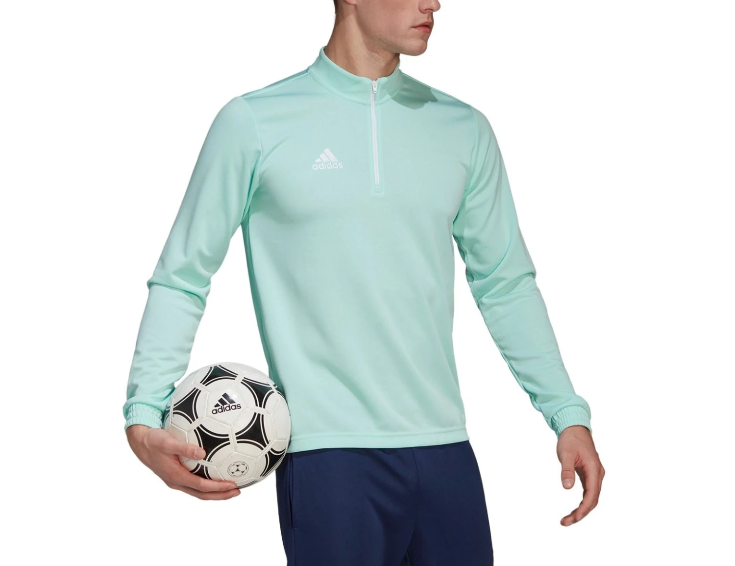 The light blue adidas Entrada 22 Training Top for men has a minimalist design and is made of supple polyester. The shirt keeps you warm on and around the field and is made with moisture-wicking AEROREADY technology that keeps the body dry. The stand-up collar has a ¼ zipper that allows you to determine your own ventilation.