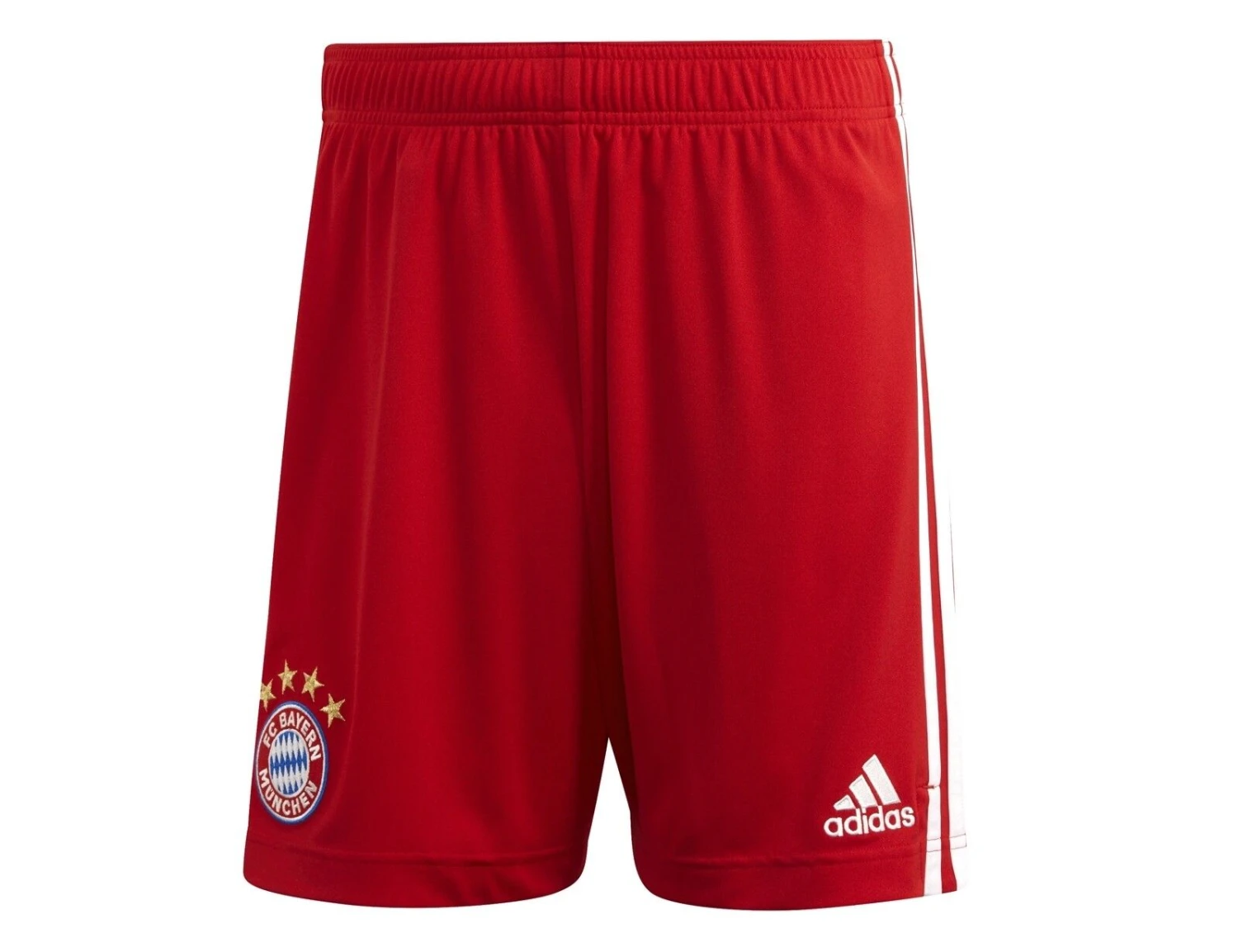 Offizieller Heimshort des FC Bayern München, Saison 2020/2021. Die Shorts verfügen über die AEROREADY® Technologie, welche den Feuchtigkeitstransport beschleunigt und die Atmungsaktivität verbessert. Auf dem Fußballshort ist das FCB Logo mit den vier Championsternen, das adidas Logo und an den Seiten sind die 3 adidas Streifen in weiß. Elastischer Bund mit Kordelzug.