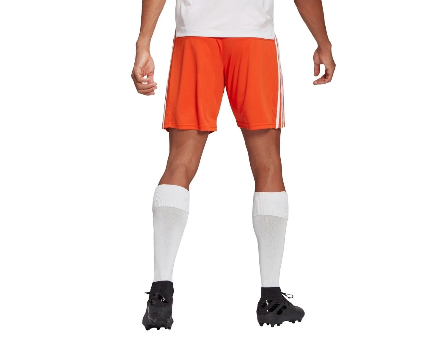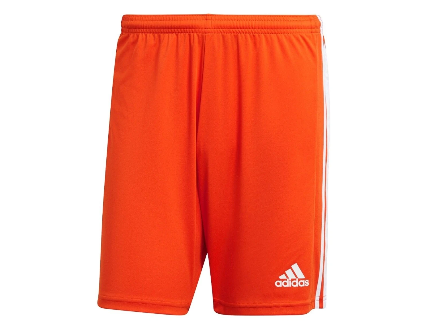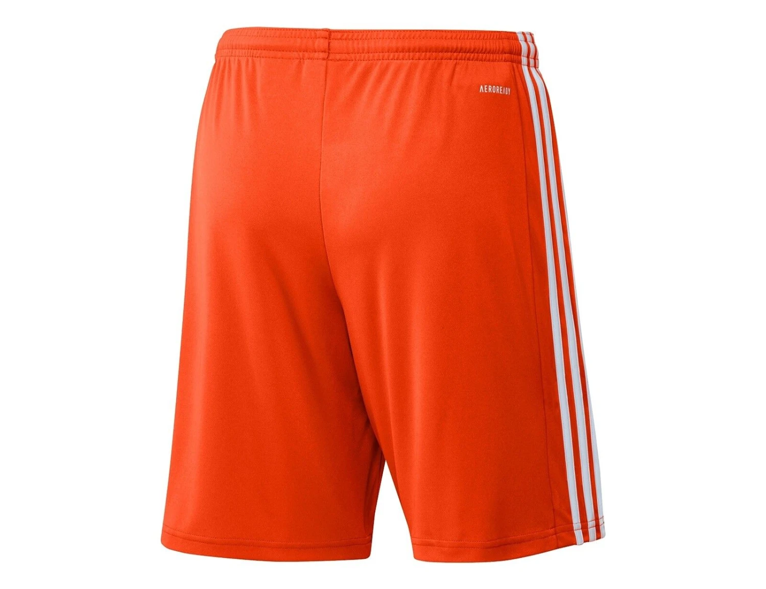 Orangefarbener Squadra 21 Fußballshort von adidas. Der Short verfügt über die AEROREADY® Technologie für einen guten Feuchtigkeitstransport und perfekte Atmungsaktivität. Die Fußballshorts haben einen elastischen Bund und weiße 3 adidas Streifen an den Seiten. Dieser Artikel ist aus Primegreen, einer Reihe von recycelten High Performance Materialien.
