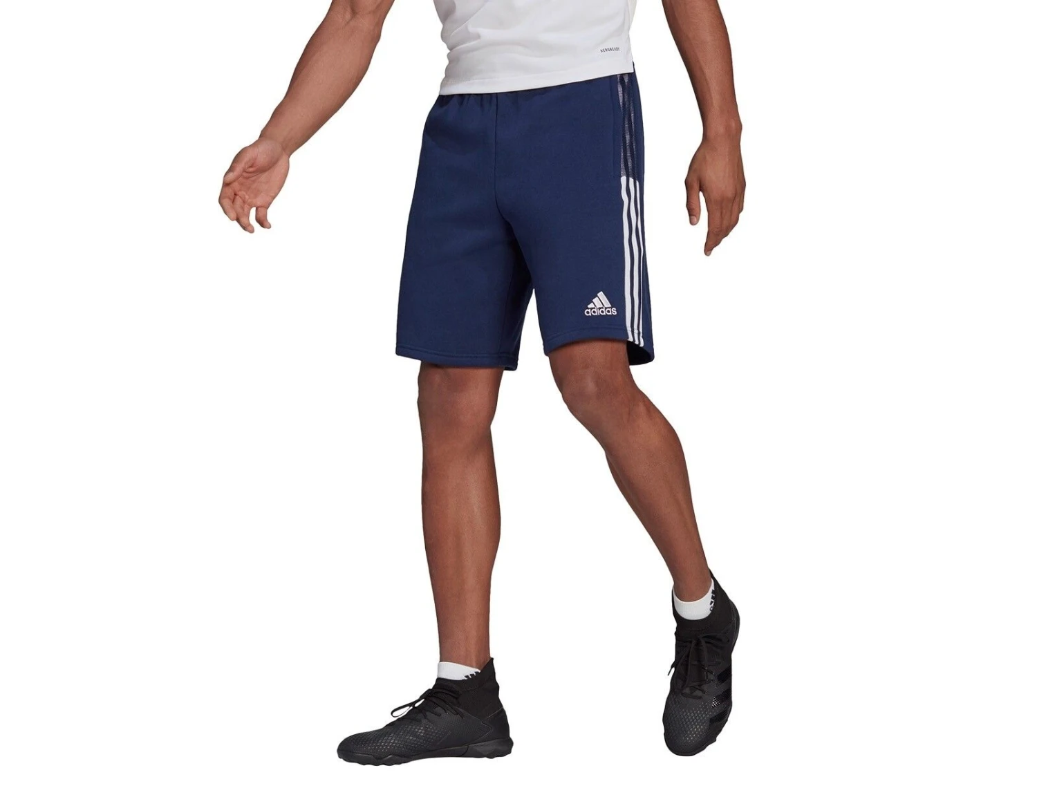 Die dunkelblauen adidas Tiro 21 Sweatshorts für Herren eignen sich perfekt zum Aufwärmen oder Abkühlen nach dem Training oder Spiel oder für die Freizeit. Das weiche Material ist aus einem Baumwoll/Polyester Mix. Die Shorts haben einen elastischen Bund mit Kordelzug und Seitentaschen mit Reißverschlüssen.