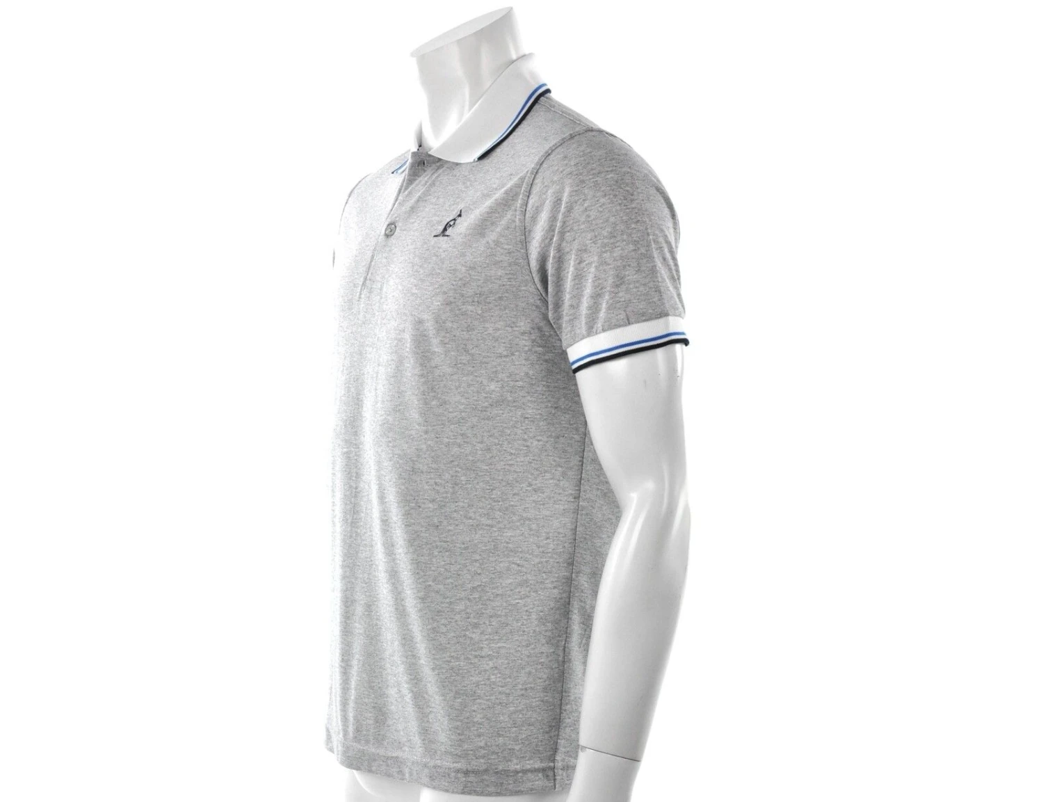 Das graue Herren Polsoshirts hat eine Knopfleiste auf der Vorderseite. Auf die Brust ist das Australian Logo gestickt und am Kragen und an den Ärmeln sind Kontraststreifen.