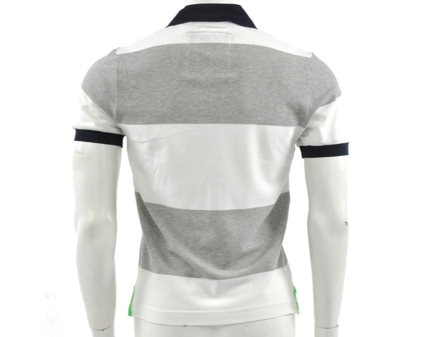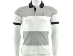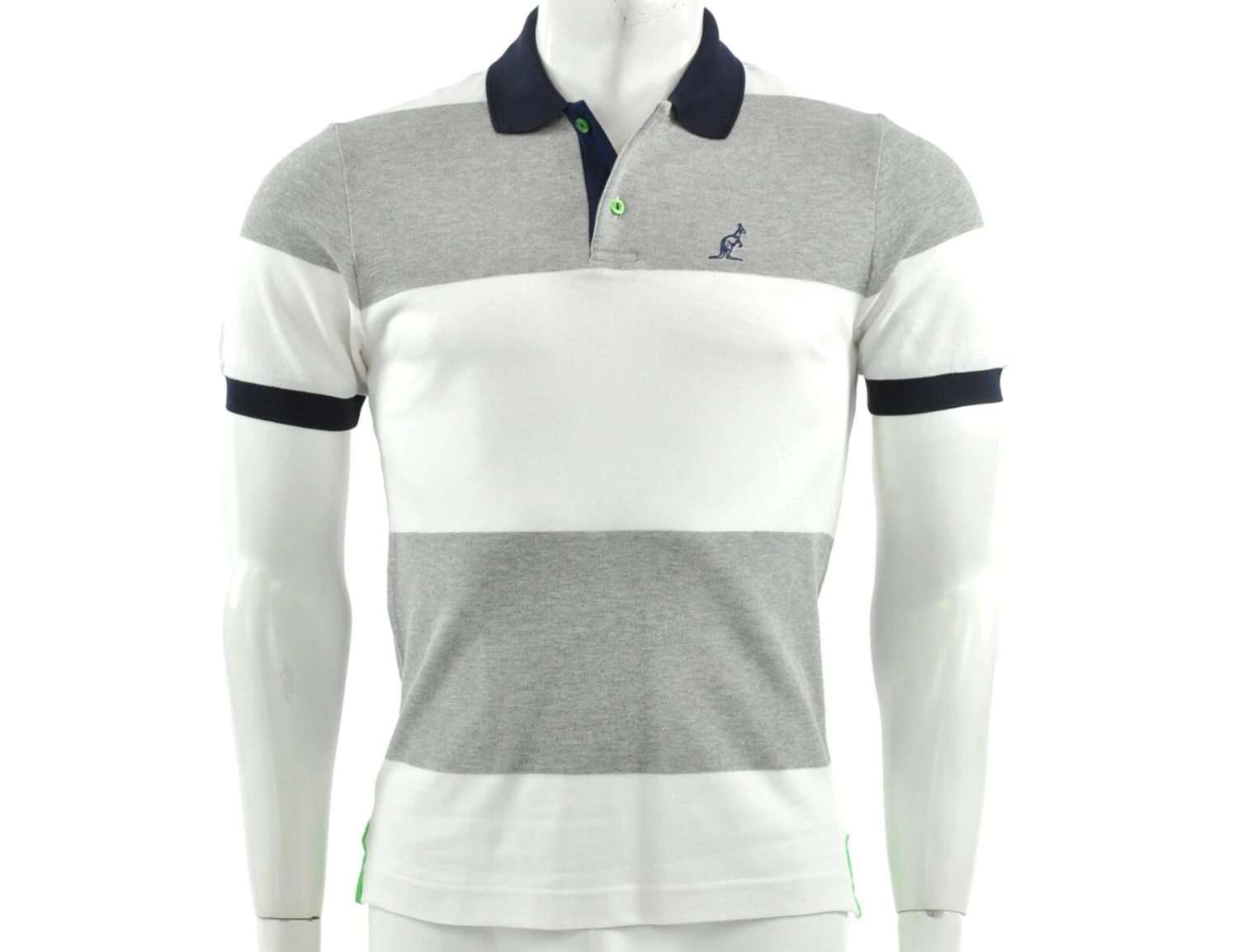 Weiß/grau gestreiftes Australian Poloshirt für Herren. Auf der Brust ist das Australian Logo. Das Poloshirt hat eine Knopfleiste.