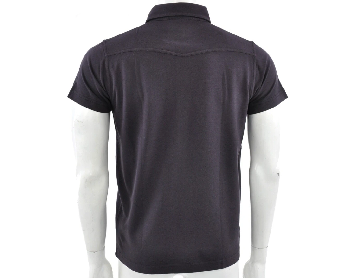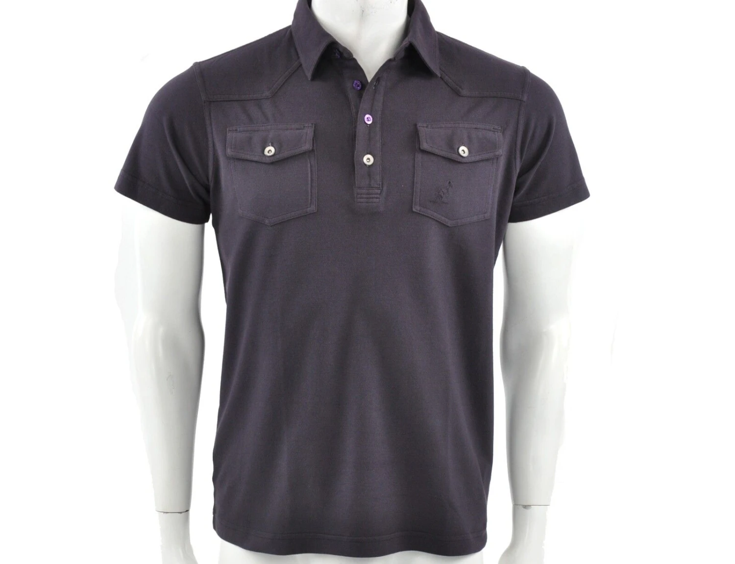 Dunkel purplefarbenes Australian Poloshirt für Herren mit gesticktem Australian Logo auf der Brust. Auf der Vorderseite ist eine Knopfleiste. Das Poloshirt hat zwei Brusttaschen.