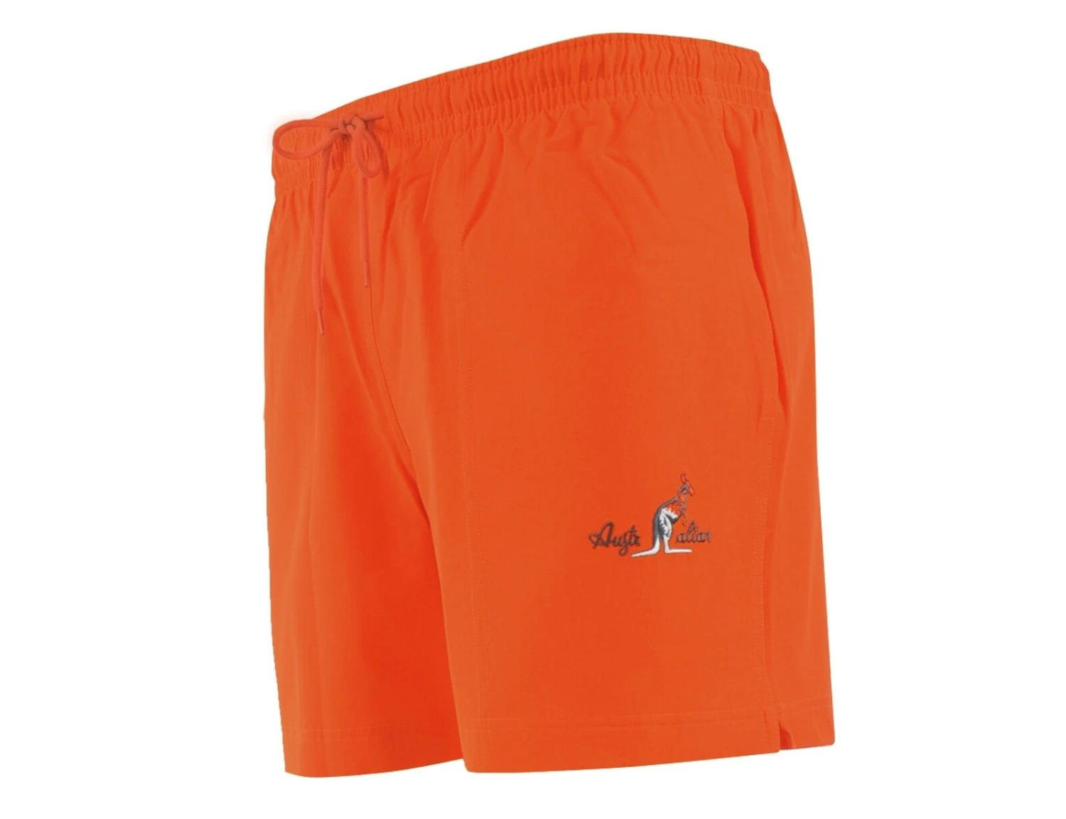 Auffällig orangefarbener Short von Australian. Der Short ist aus speziellem Supplex© Material. Dadurch ist der Short schnell trocknend und gegen einlaufen resistent. Der Short hat einen elastischen Bund mit Kordelzug und Seitentaschen. Das Australian Logo ist auf der Vorderseite und der Short ist knielang.