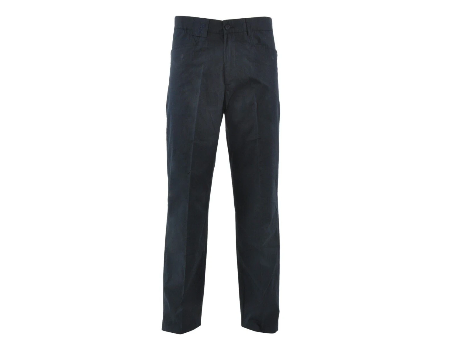 Die dunkelblaue Herrenhose von Australian hat 2 Seitentaschen, 2 Gesäßtaschen mit Knöpfen und am Bund einen Reißverschluss und einen Knopf. Die Hose hat eine weite Passform.