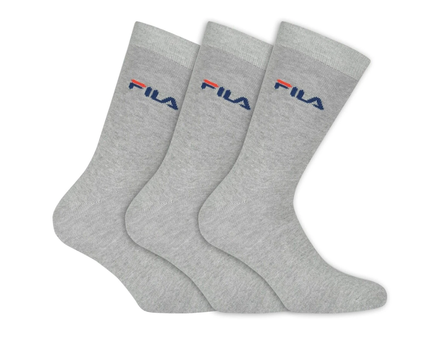 Graue Filasocken mit Logoprint. Die Socken sind aus einem dünnem Baumwoll/Polyester Materialmix und sind im 3er Pack.