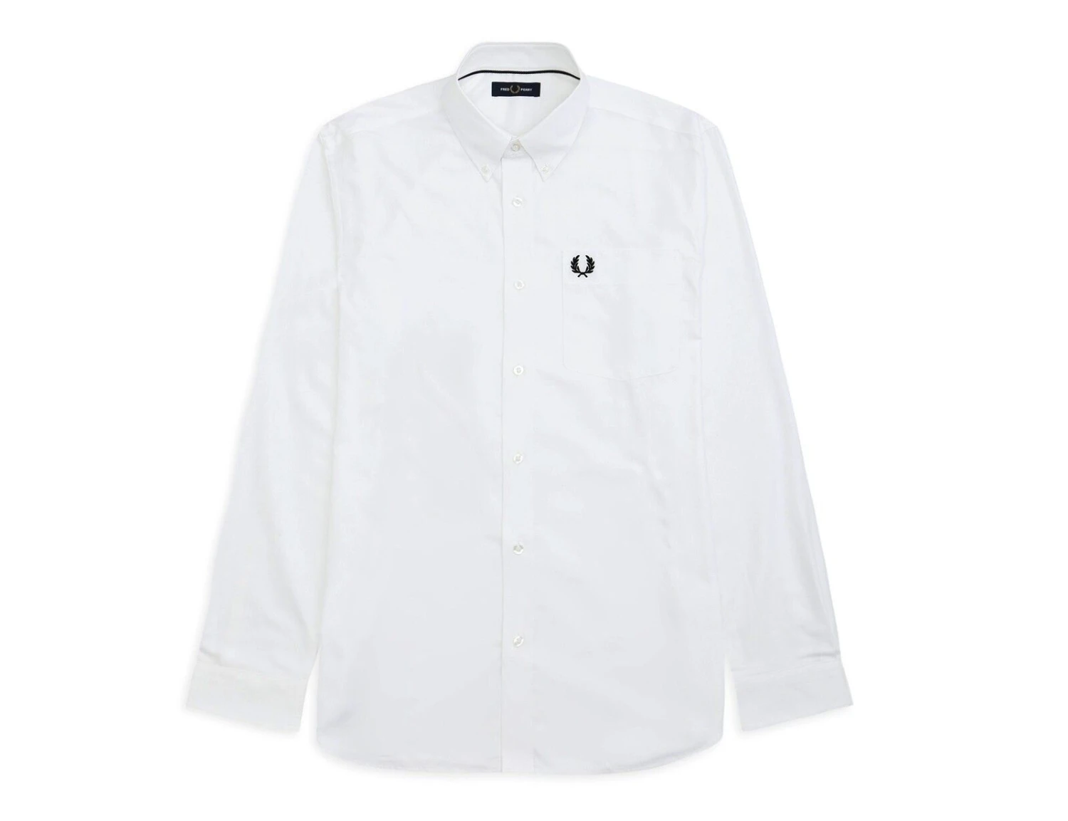 Fred Perry Oxford Hemd aus 100% Baumwolle. Das Hemd hat eine normale Passform und Details von Fred Perry, wie einen Button-Down Kragen und einen abgerundeten Saum.