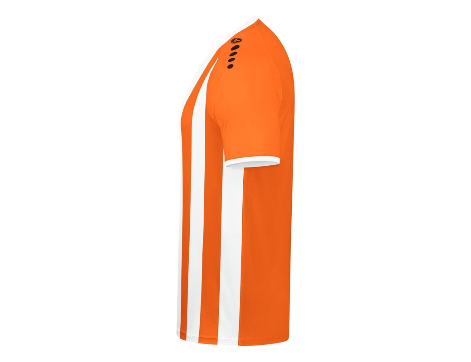 The JAKO Inter short-sleeved shirt is made from 100% recycled polyester. The Interlock Polyester is more durable and elastic than comparable fabrics such as Single Jersey. The back in Micro-Mesh makes the striped shirt particularly breathable.