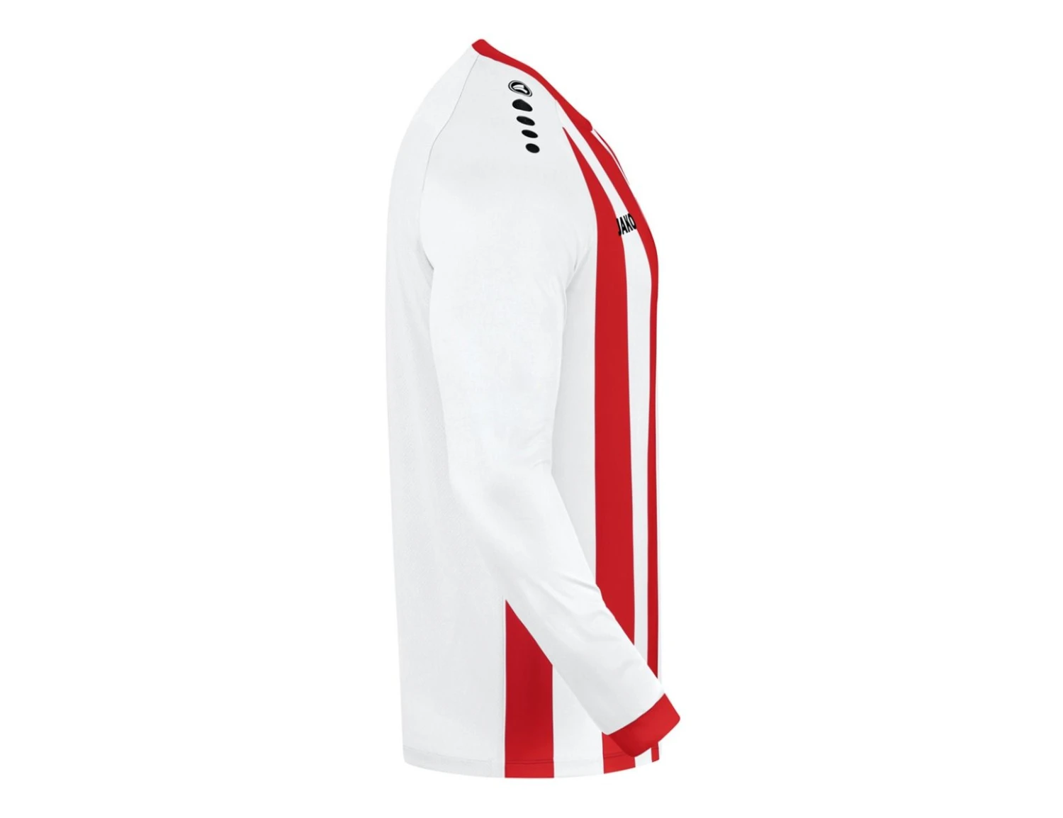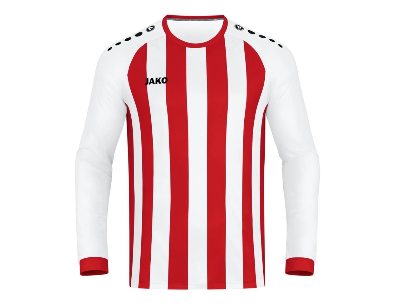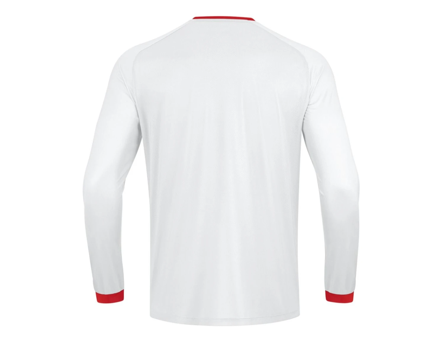 The JAKO Inter long-sleeved shirt is made from 100% recycled polyester. The Interlook fabric ensures high elasticity and durability. The back in Micro-Mesh makes the long-sleeved shirt particularly breathable.
