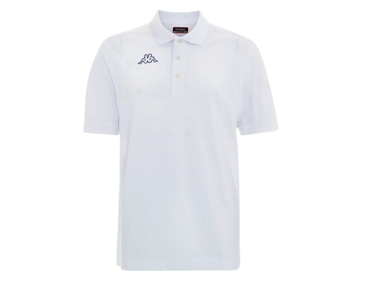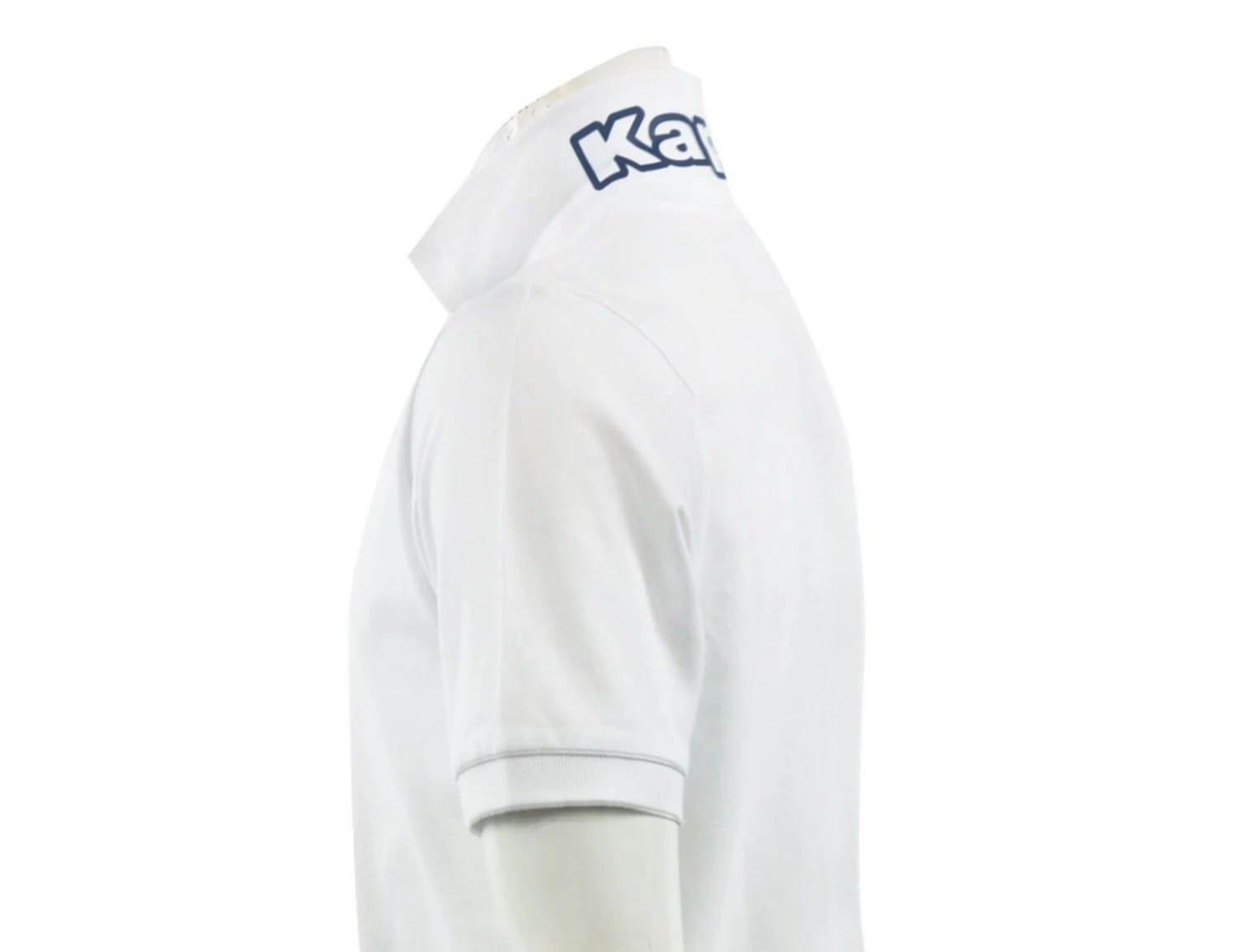 The white Logo Life MSS Polo from Kappa is made of 100% cotton and has a regular fit. This Kappa polo has all the classic features such as a rib collar with button closure, the Kappa logo is embroidered on the chest. When the collar is worn up, a dark blue Kappa logo is visible.