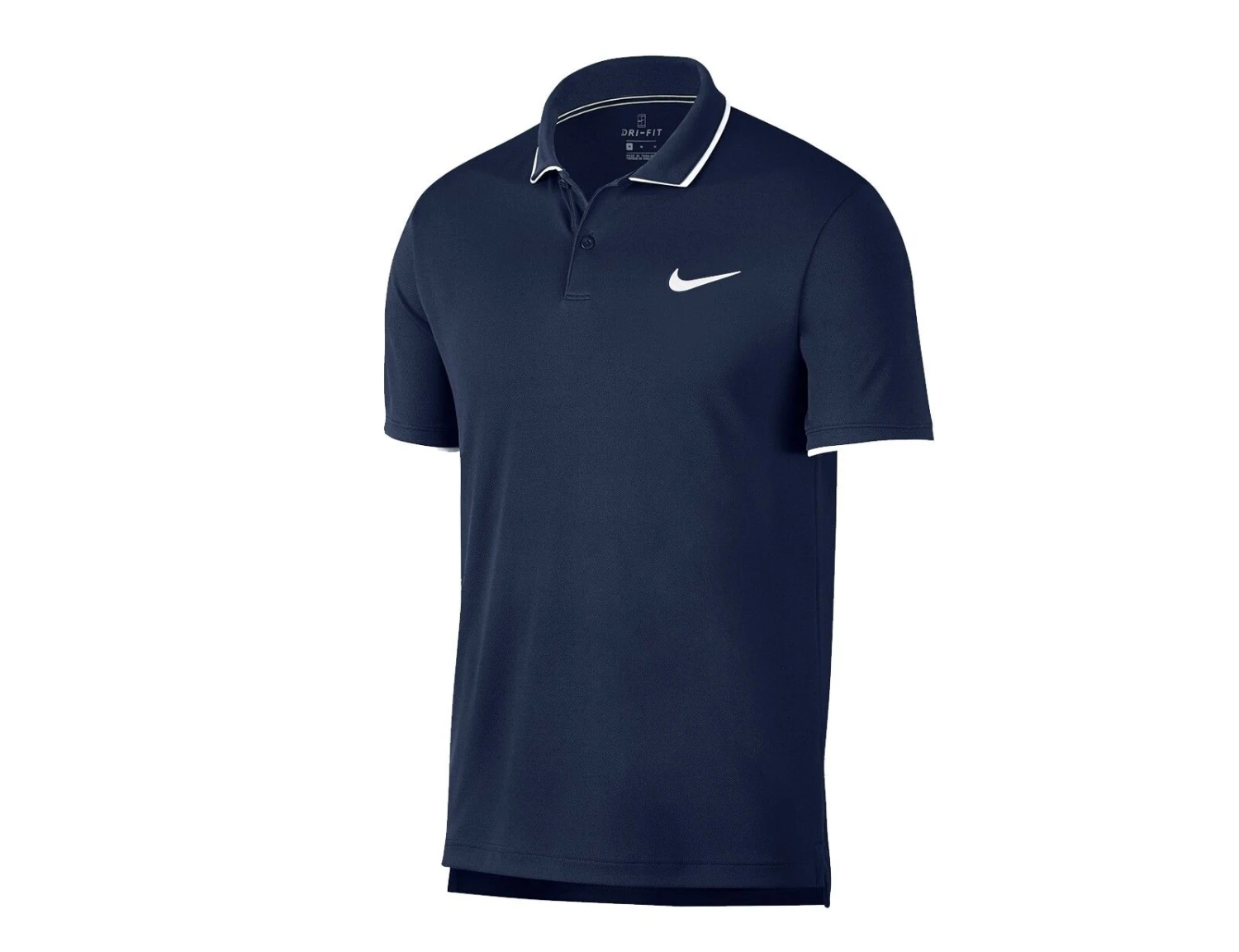 Nike Court Dry Team Polo. Das Polo aus Nike Dry Material hält den Körper während des Trainings trocken und bequem. Das Shirt hat einen Polokragen, eine Knopfleiste und das Nike Logo ist auf der Brust. Das sportliche Polo hat eine normale Passform.
