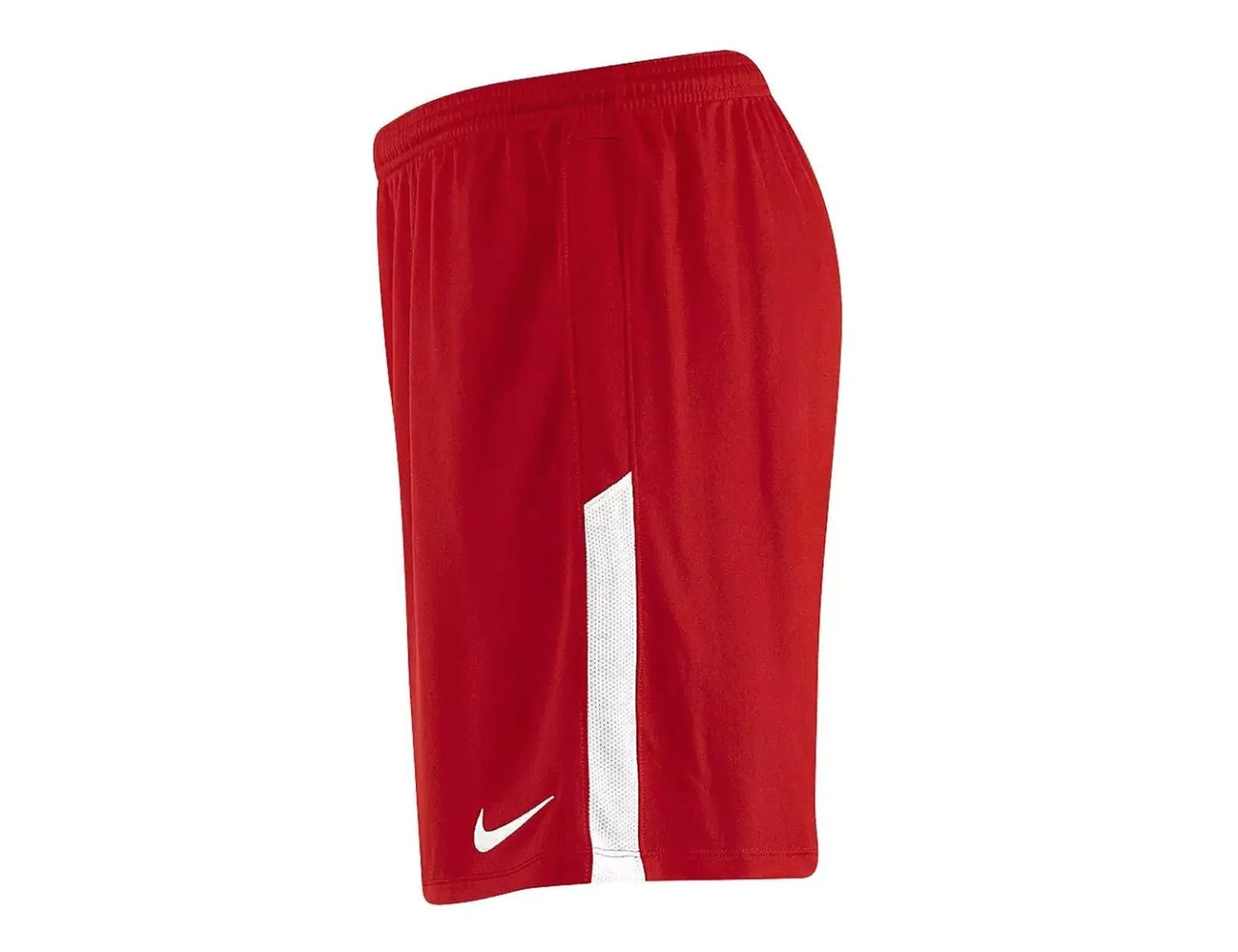 Die roten Nike League II Knit Shorts für Herren sind aus weichem und geschmeidigem Polyester mit Dri-FIT Technologie. Mesh Einsätze an den Seiten sorgen für gute Atmungsaktivität. Die Shorts haben einen elastischen Bund mit Kordelzug.