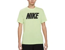 This yellow Nike T-shirt for men is made from soft jersey cotton and has a large Nike logo print on the front. The shirt has a standard fit.