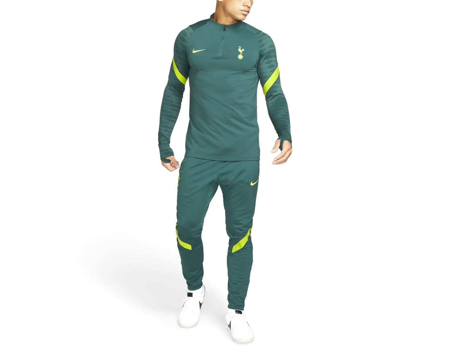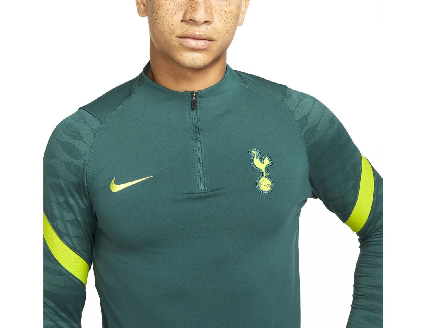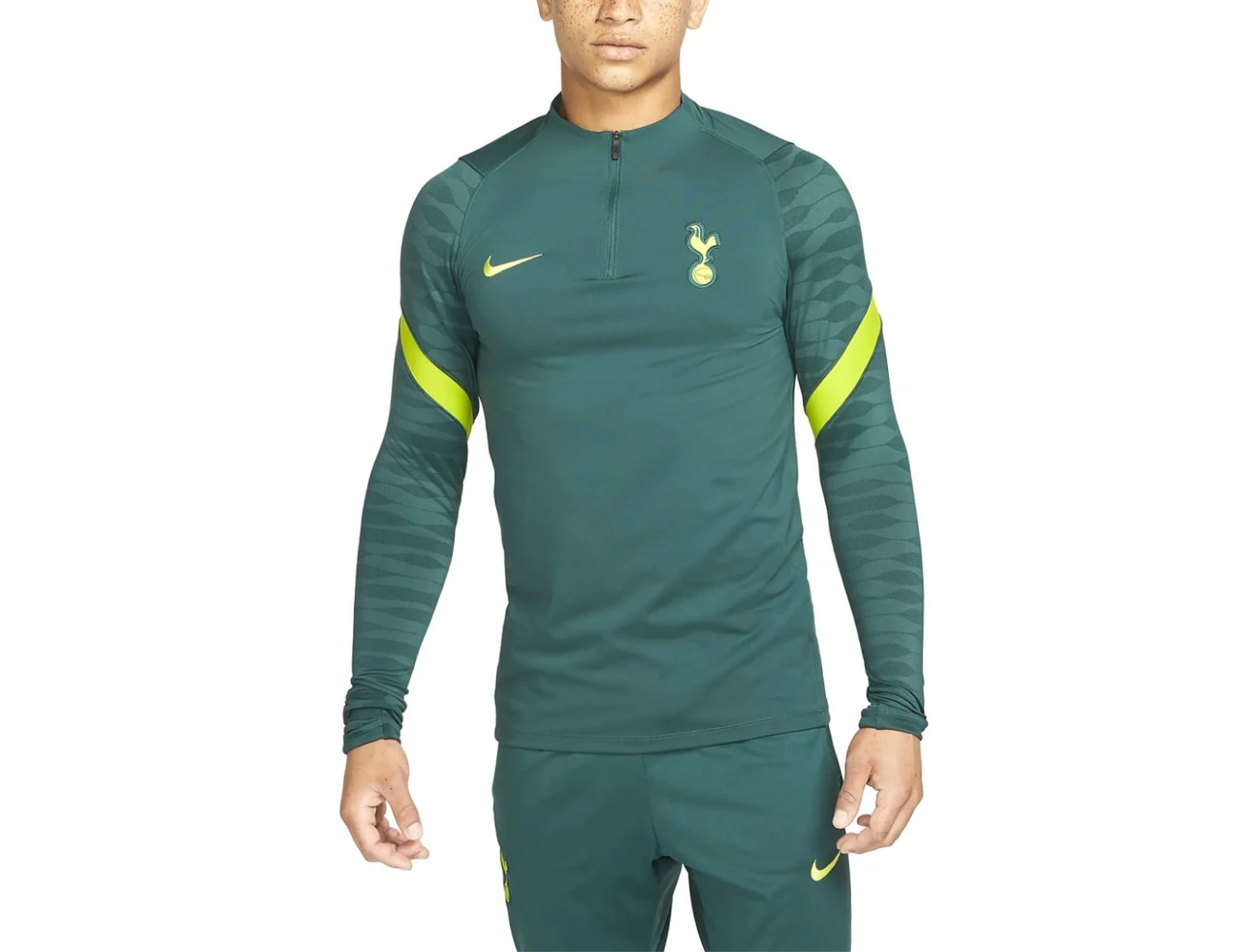 The Nike Tottenham Hotspur Strike Drill top for men has a streamlined fit, a half zip at the neck and invisible thumbholes. The material is elastic for good freedom of movement and thanks to the Nike Dry fabric with Dri-FIT technology you stay comfortable and dry during your training. The drill top features embroidered Tottenham and Nike emblems and has bright green details.